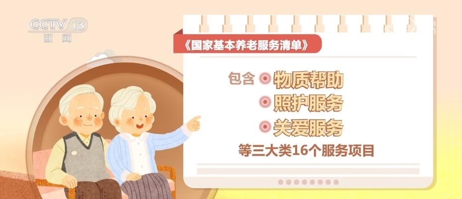 《國(guó)家基本養(yǎng)老服務(wù)清單》的內(nèi)容,包含物質(zhì)幫助、照護(hù)服務(wù)、關(guān)愛(ài)服務(wù)等三大類(lèi)16個(gè)服務(wù)項(xiàng)目。