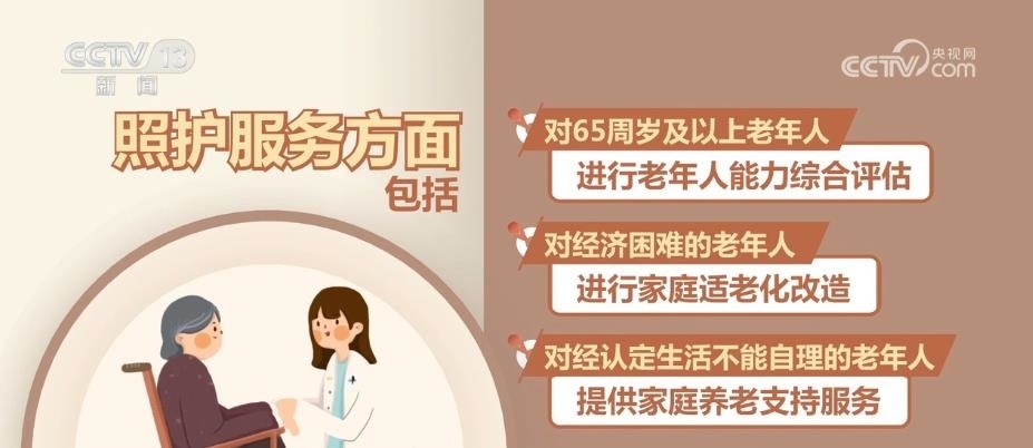 照護(hù)服務(wù)方面包括:對(duì)65周歲及以上老年人進(jìn)行老年人能力綜合評(píng)估;對(duì)經(jīng)濟(jì)困難的老年人進(jìn)行家庭適老化改造;對(duì)經(jīng)認(rèn)定生活不能自理的老年人提供家庭養(yǎng)老支持服務(wù);對(duì)特困老年人進(jìn)行集中供養(yǎng)或者分散供養(yǎng);對(duì)國(guó)家和社會(huì)作出特殊貢獻(xiàn)的老年人提供集中供養(yǎng)服務(wù);計(jì)劃生育特殊家庭老年人優(yōu)先享受機(jī)構(gòu)養(yǎng)老。