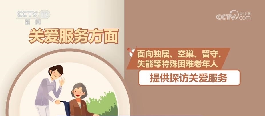 關(guān)愛(ài)服務(wù)方面,面向獨(dú)居、空巢、留守、失能等特殊困難老年人提供探訪關(guān)愛(ài)服務(wù)。