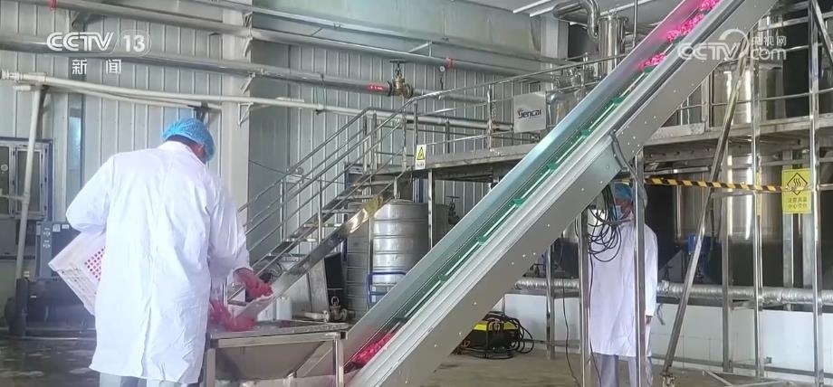 當天采摘下來的玫瑰花會被送往工廠進行加工處理。由于當?shù)貧夂蚋稍镅谉?,為了延長生產(chǎn)周期,工人們會對玫瑰花瓣進行打冷降溫處理,以保持花瓣的新鮮度。