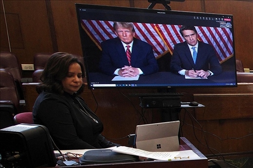 ·當(dāng)?shù)貢r(shí)間5月23日,美國(guó)前總統(tǒng)特朗普通過(guò)視頻會(huì)議出席了“封口費(fèi)”一案的預(yù)審聽證會(huì),庭審持續(xù)約15分鐘。