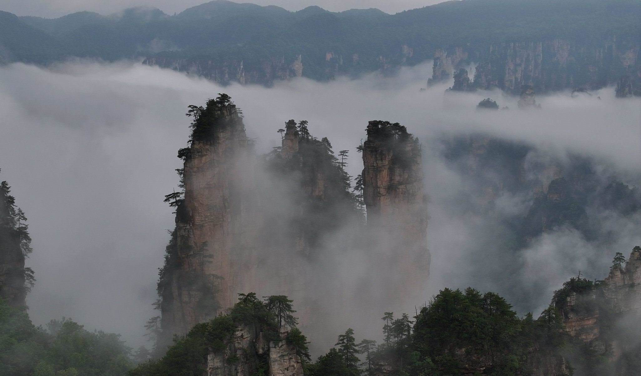 2023年5月27日,湖南張家界,國(guó)家森林公園天子山、十里畫(huà)廊出現(xiàn)雨后云海勝景,云霧在峰林間變幻飄逸,宛如水墨畫(huà)境。視覺(jué)中國(guó)