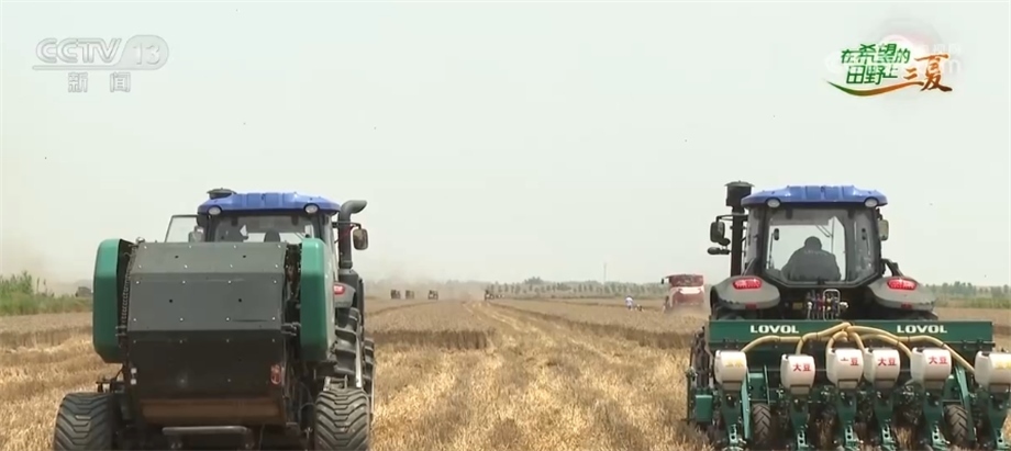 當然,確保顆粒歸倉,除了要減損,更要及時搶收。今年麥收期間,當?shù)赜錾狭撕币姷慕涤晏鞖?,而?日開始預(yù)計還會有一輪降雨,所以大比武的同時,搶收也在抓緊進行,大家要抓緊這幾天的窗口期,進行24小時的搶收作業(yè)。農(nóng)業(yè)專家告訴我,在當?shù)?,降雨對于麥收的影響有兩點,一個是土地變得潮濕松軟,大型機械下地難。針對這點,當?shù)匾膊扇×舜胧?,在一些土地還沒有干透的麥田里,我們看到有不少履帶式的收割機,它們雖然體型稍小,但履帶可以避免陷入土地,還有一些無人駕駛的智慧農(nóng)機,可以解決搶收時的人手問題。這些都是當?shù)剞r(nóng)業(yè)部門按照農(nóng)戶需求及時幫助調(diào)配的。目前,阜南全縣投入聯(lián)合收割機4300多臺,組建了搶收服務(wù)隊76個、農(nóng)機維修服務(wù)隊28個,將爭取在5天內(nèi)完成全部麥收。