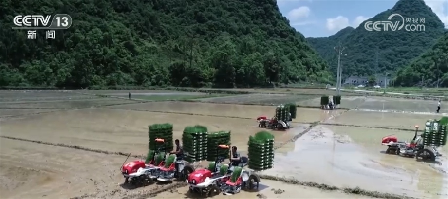 我們?cè)俚劫F州省黔南州長(zhǎng)順縣付家院村去看看。稻田里,多臺(tái)插秧機(jī)在農(nóng)機(jī)手的操作下,將一株株秧苗從苗盤整齊地栽種入田。今年,長(zhǎng)順縣計(jì)劃種植水稻12萬(wàn)畝,目前超過6成的水田完成了插秧,預(yù)計(jì)6月中旬能全部結(jié)束。