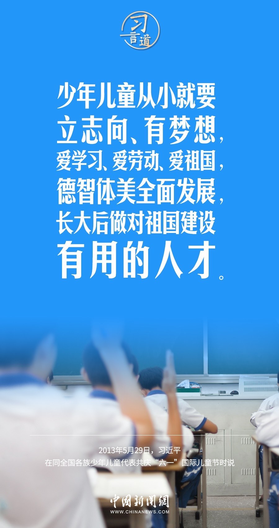 “六一”國際兒童節(jié)到了。習(xí)近平總書記高度重視少年兒童的健康成長,多次寄語少年兒童,希望他們有夢想、愛學(xué)習(xí),成為對祖國建設(shè)有用的人才。