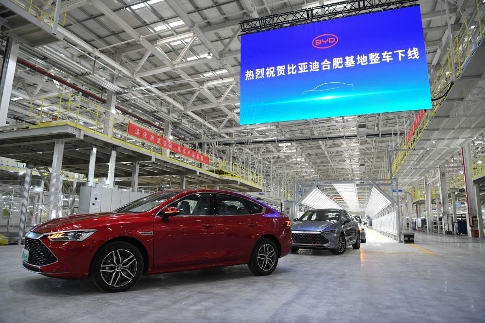 2022年6月30日,比亞迪合肥基地項(xiàng)目整車下線儀式在安徽省合肥市長豐縣下塘鎮(zhèn)舉行。新華社記者 張端 攝
