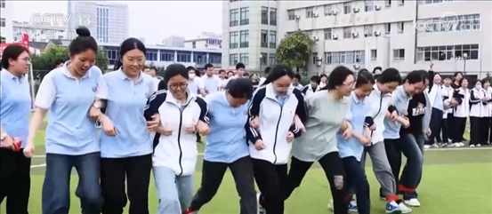 在四川廣漢中學(xué),一場專門針對高三學(xué)子的趣味接力賽正在開展。同學(xué)們在完成賽跑、跳繩等項(xiàng)目的同時(shí),需要團(tuán)隊(duì)協(xié)作完成顛網(wǎng)球、射門等項(xiàng)目。
