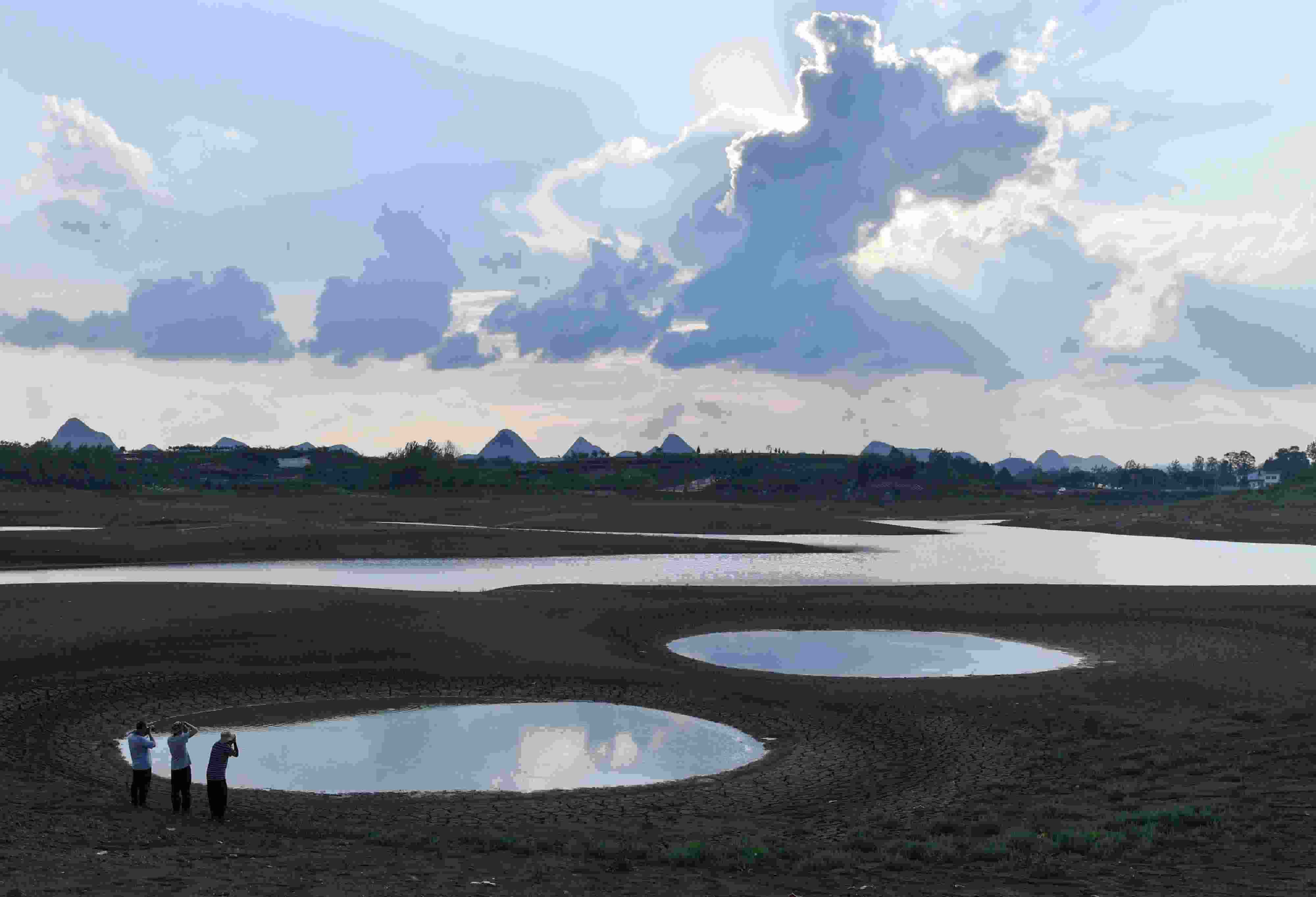 2023年6月3日,貴陽(yáng),紅楓湖水位降低,灘涂裸露。 視覺中國(guó)