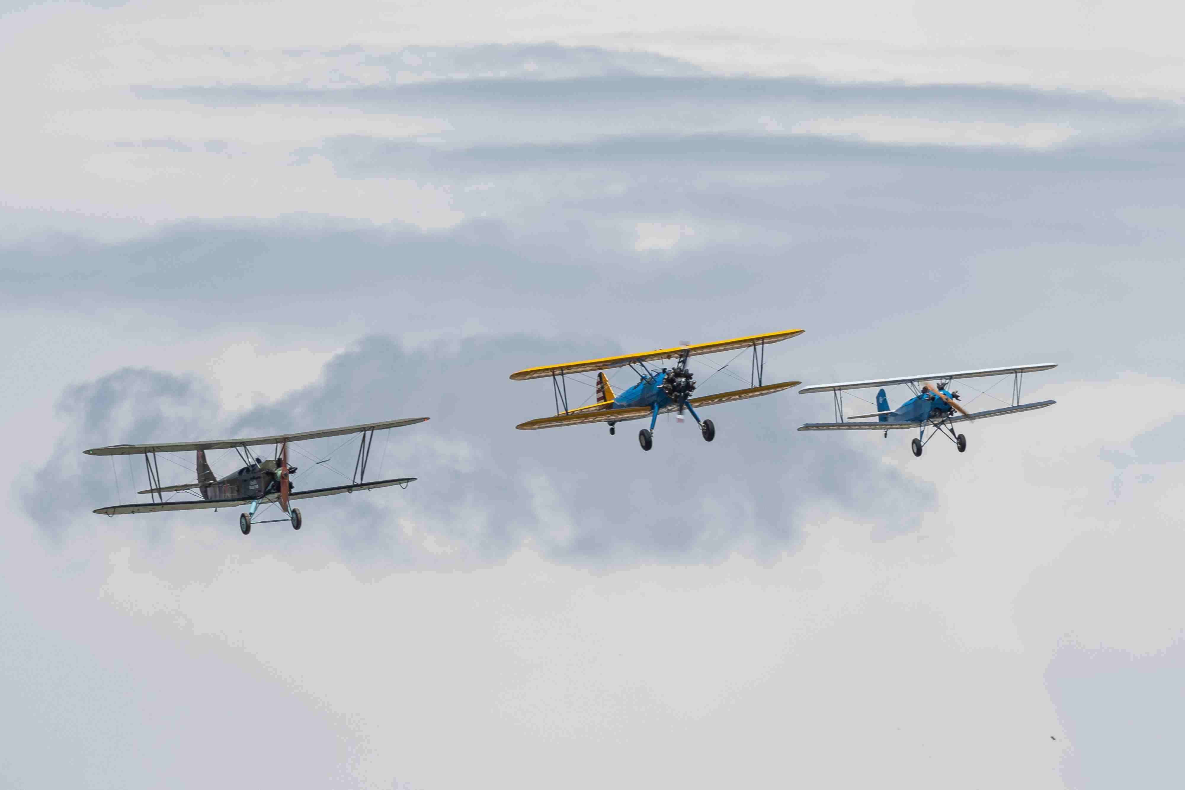 當(dāng)?shù)貢r(shí)間2023年6月4日,西班牙馬德里舉行老式飛機(jī)航空展,多型老式飛機(jī)進(jìn)行飛行表演。 視覺中國(guó)