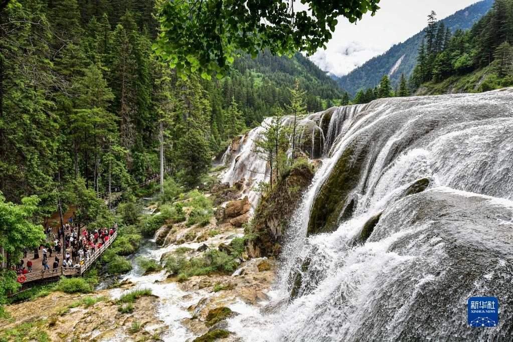 進(jìn)入6月,世界自然遺產(chǎn)九寨溝景區(qū)山巒疊翠,飛瀑爭喧。截至6月8日,九寨溝景區(qū)2023年游客接待量超120萬人次。新華社記者 張超群 攝