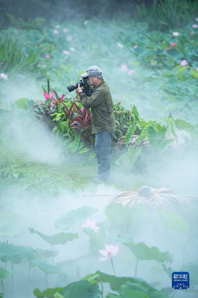 6月9日,游人在澳門龍環(huán)葡韻拍攝荷花。