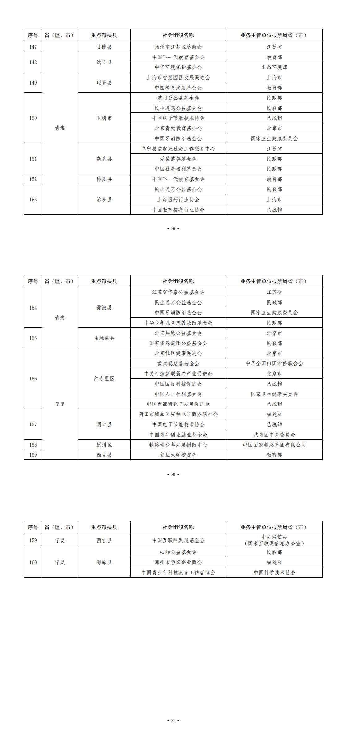 央視網(wǎng)消息:據(jù)民政部網(wǎng)站消息,為深入貫徹落實(shí)黨的二十大決策部署,根據(jù)《社會(huì)組織助力鄉(xiāng)村振興專(zhuān)項(xiàng)行動(dòng)方案》,民政部、國(guó)家鄉(xiāng)村振興局在社會(huì)組織自愿報(bào)名、有關(guān)部門(mén)推薦申報(bào)、160個(gè)國(guó)家鄉(xiāng)村振興重點(diǎn)幫扶縣同意對(duì)接的基礎(chǔ)上,形成了《全國(guó)性社會(huì)組織、東部?。ㄖ陛犑校┥鐣?huì)組織與160個(gè)國(guó)家鄉(xiāng)村振興重點(diǎn)幫扶縣結(jié)對(duì)幫扶名單》(見(jiàn)附件),現(xiàn)予印發(fā)執(zhí)行,有關(guān)工作通知如下。