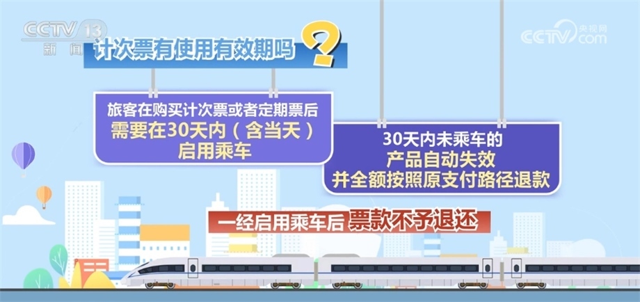 旅客在購買計次票或者定期票后,需要在30天內(nèi)(含當(dāng)天)啟用乘車,30天內(nèi)未乘車的,產(chǎn)品自動失效并全額按照原支付路徑退款。一經(jīng)啟用乘車后,票款不予退還。