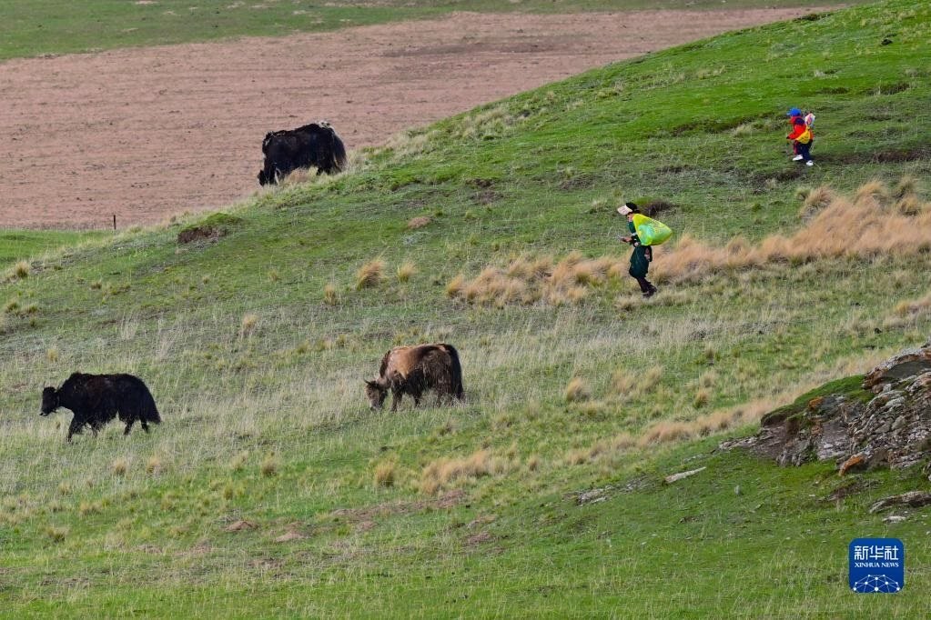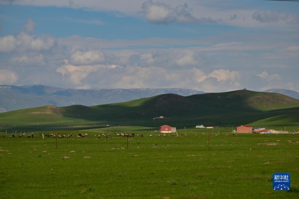 6月9日,在青海省黃南藏族自治州澤庫(kù)縣的高原草原上,當(dāng)?shù)啬撩裨诜拍痢?