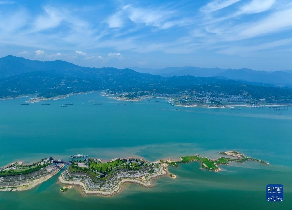 6月10日,船舶從湖北省宜昌市秭歸縣木魚(yú)島外沿水域駛過(guò)(無(wú)人機(jī)照片)。