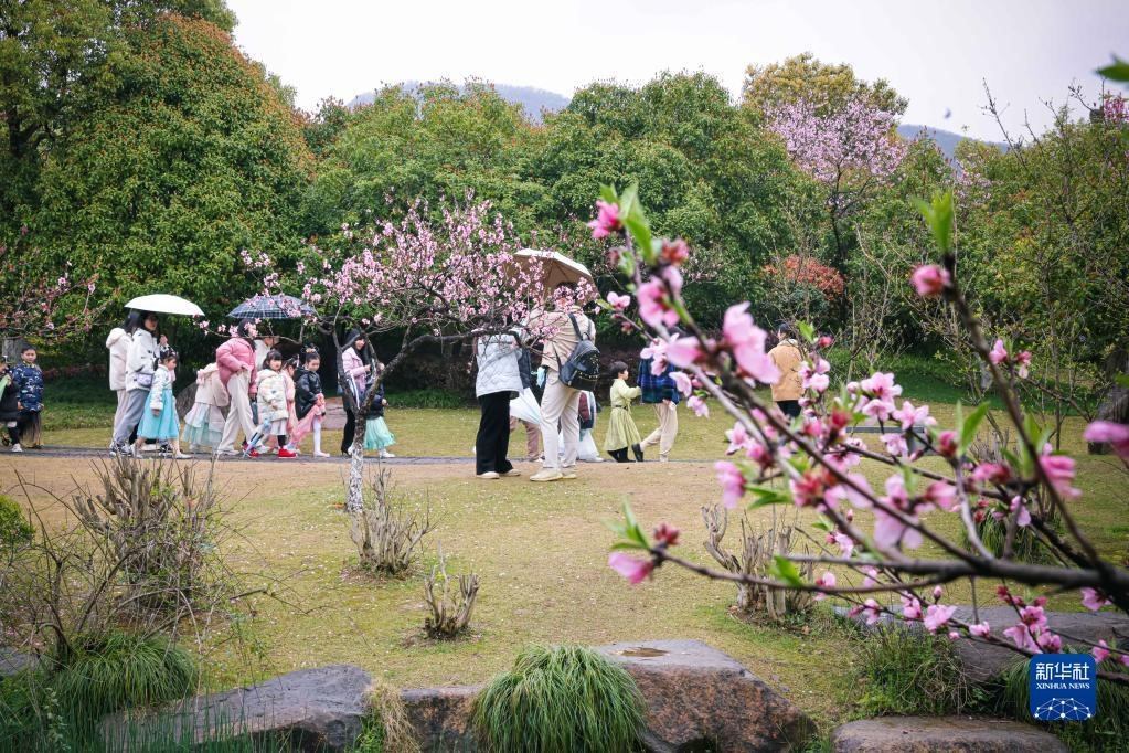 游客在浙江杭州丁蘭街道皋城村的桃園內(nèi)游園賞花(3月25日攝)。近年來,杭州丁蘭街道皋城村在改善村容村貌、建設(shè)美麗鄉(xiāng)村的基礎(chǔ)上發(fā)展鄉(xiāng)村旅游業(yè),促進鄉(xiāng)村文旅融合。新華社記者 江漢 攝