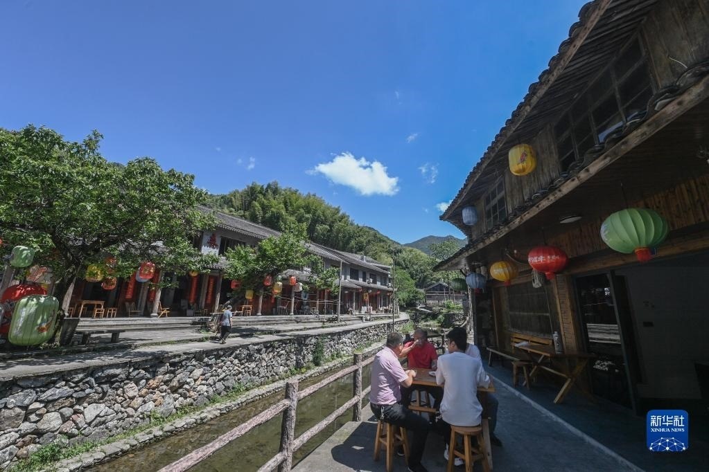 人們在浙江臺州黃巖區(qū)嶼頭鄉(xiāng)布袋坑村的溪水旁喝茶(5月30日攝)。近年來,嶼頭鄉(xiāng)堅持黨建引領(lǐng),以全域旅游和美麗鄉(xiāng)村建設(shè)為重要抓手,引進文化創(chuàng)意團隊,為鄉(xiāng)村旅游注入更加年輕化的元素,推進特色民宿以及布袋山饅頭、溪坑魚等農(nóng)特產(chǎn)品的發(fā)展,帶動鄉(xiāng)村振興和百姓共富。新華社記者 徐昱 攝