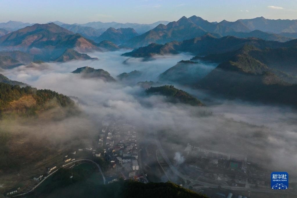 浙江杭州淳安縣屏門鄉(xiāng)風(fēng)光(無人機照片,3月10日攝)。新華社記者 徐昱 攝