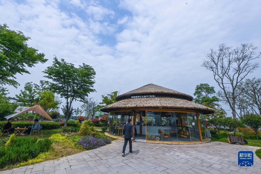 位于浙江湖州織里鎮(zhèn)伍浦村漁耕文化園的陶灣里鄉(xiāng)村咖啡店(4月11日攝)。近年來,織里鎮(zhèn)依托當(dāng)?shù)孛利愢l(xiāng)村建設(shè)以及自然風(fēng)光,招引鄉(xiāng)賢返鄉(xiāng)創(chuàng)業(yè),依托閑置民宅、閑置土地建設(shè)特色咖啡店、花海景觀、特色民宿和農(nóng)家樂等,發(fā)展鄉(xiāng)村旅游經(jīng)濟。新華社記者 徐昱 攝