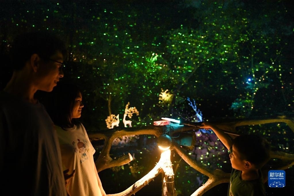 在浙江紹興新昌縣鏡嶺鎮(zhèn),游客在體驗山區(qū)夜游項目(5月4日攝)。新華社記者 翁忻旸 攝