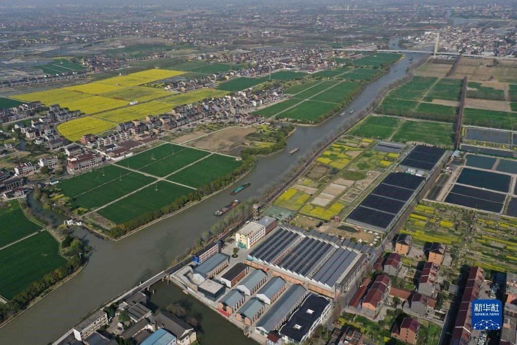 浙江杭州臨平區(qū)京杭大運河沿岸的村莊(無人機照片,3月15日攝)。新華社記者 黃宗治 攝