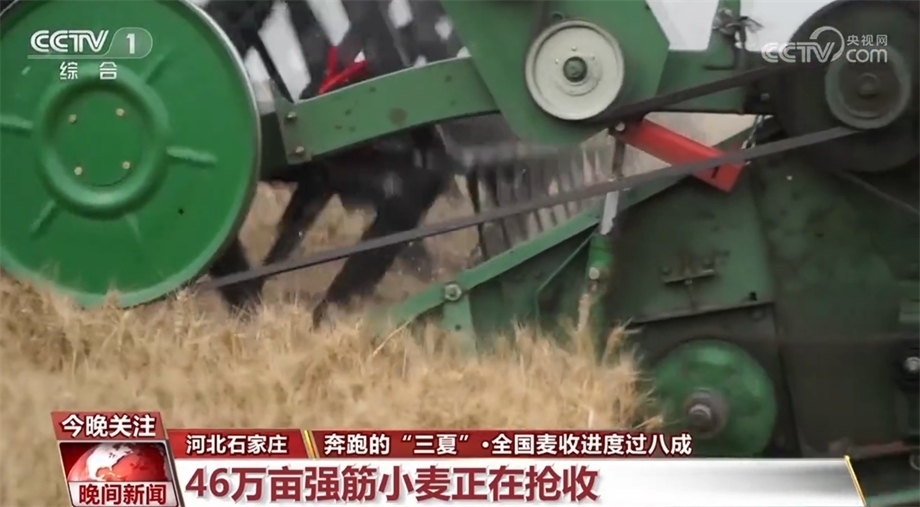 河北省石家莊市藁城區(qū)的46萬(wàn)畝強(qiáng)筋小麥正在搶收,今年這里的小麥進(jìn)一步推行規(guī)?;N植、標(biāo)準(zhǔn)化生產(chǎn)、專(zhuān)業(yè)化收儲(chǔ)。