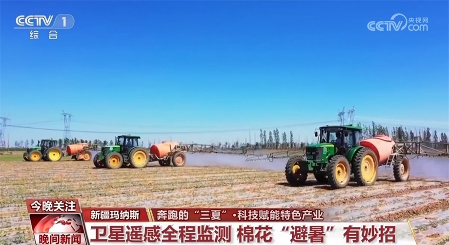 眼下,新疆昌吉瑪納斯縣的棉花正值現(xiàn)蕾期?,F(xiàn)蕾期指的是出現(xiàn)花蕾到開(kāi)花這一段時(shí)間,這個(gè)時(shí)候棉株生長(zhǎng)最快,然而持續(xù)的高溫給田間管理帶來(lái)考驗(yàn)。在瑪納斯縣樂(lè)土驛鎮(zhèn)的棉花田里,三臺(tái)裝有北斗導(dǎo)航系統(tǒng)的大馬力拖拉機(jī)正按照預(yù)先設(shè)定的線路進(jìn)行除草作業(yè)。這是農(nóng)技人員通過(guò)衛(wèi)星遙感棉花全程監(jiān)測(cè)技術(shù),幫種植戶(hù)制定的科學(xué)田管方案。