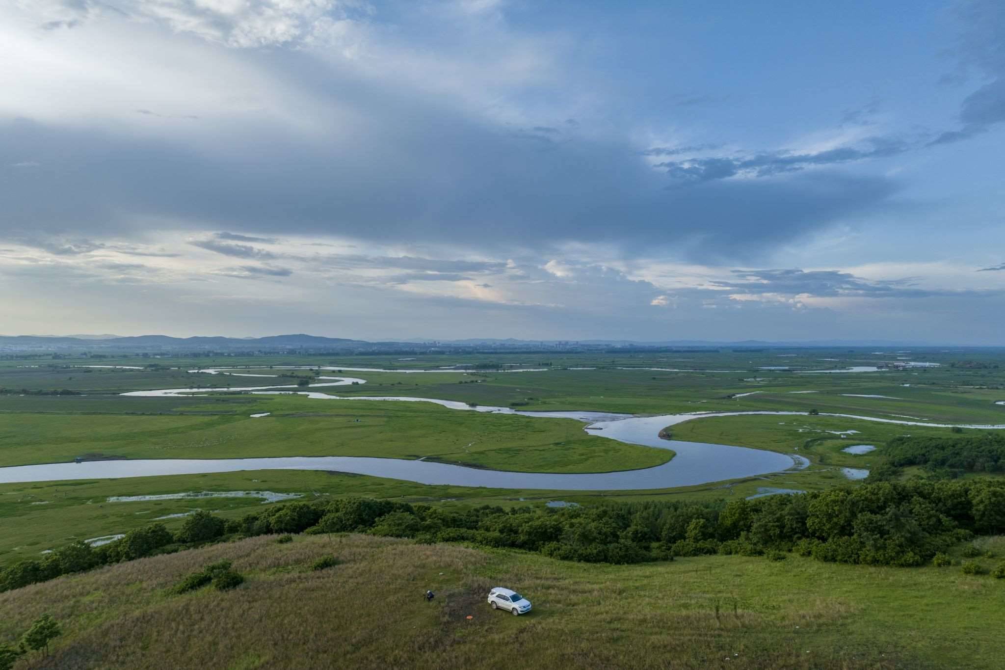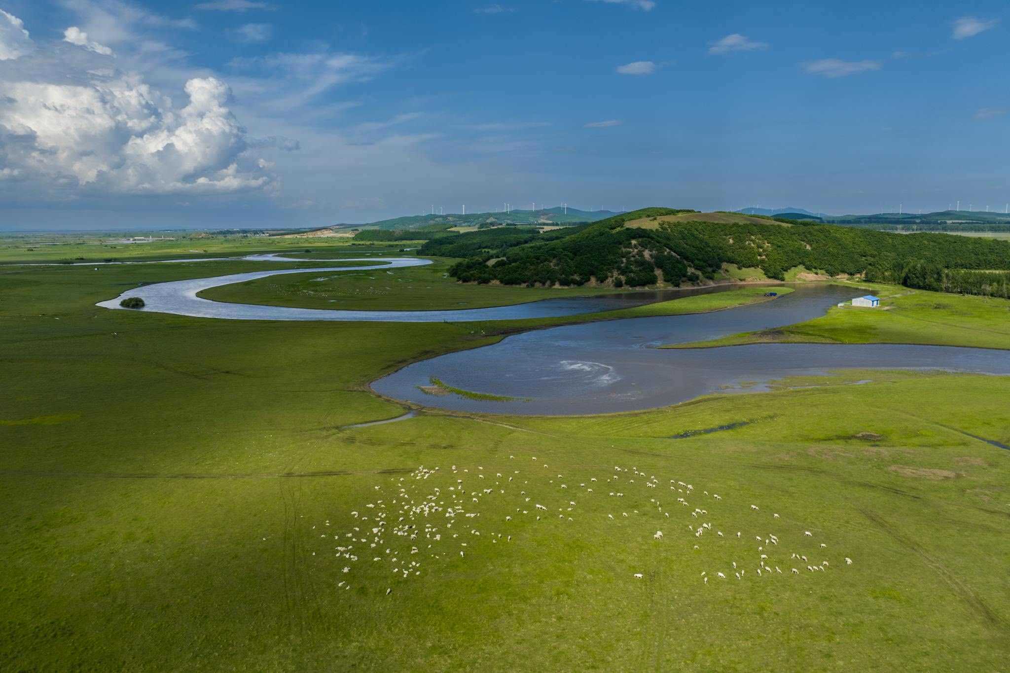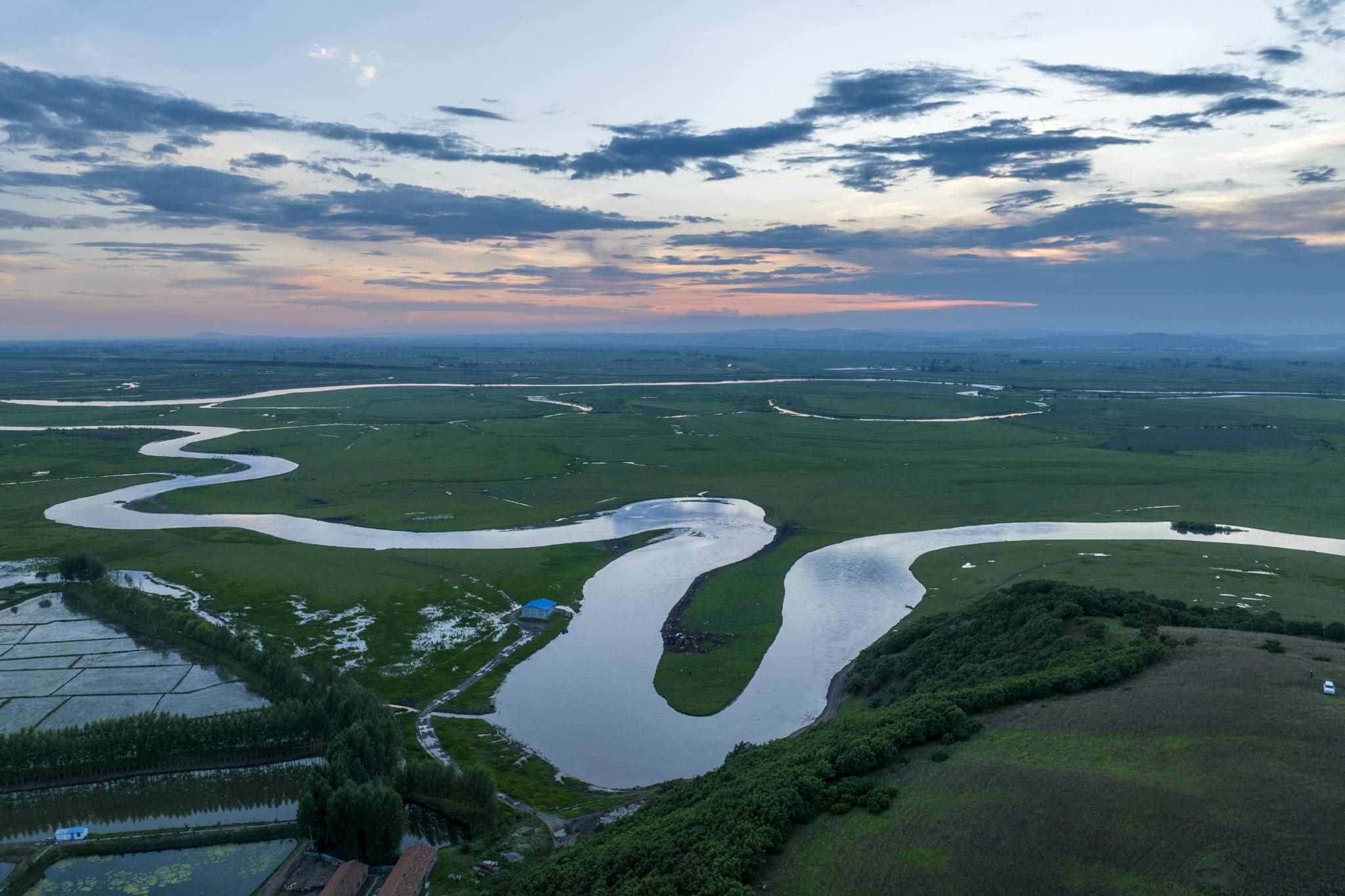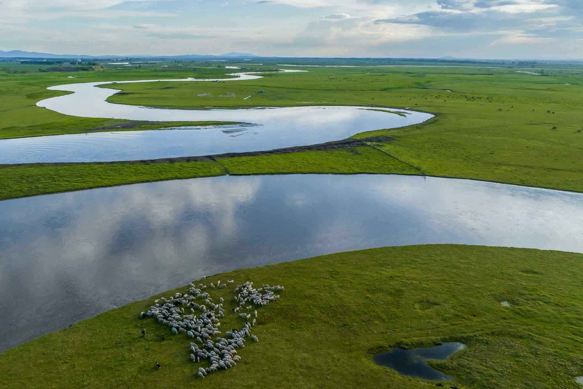 穆棱河流域現(xiàn)多云天氣 河套平原牛羊成群