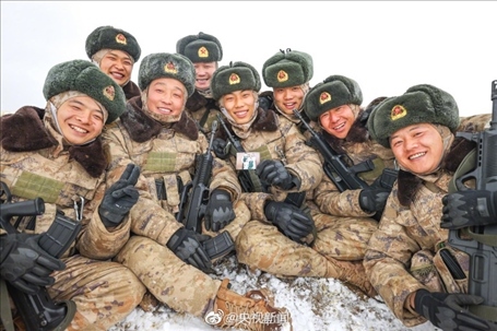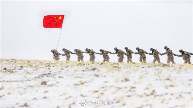 近日,新疆軍區(qū)某合成團(tuán)官兵在海拔5200米的高原,開展邊境巡邏任務(wù)。皚皚白雪之上,邊防官兵手拉著手前行,臉頰凍得通紅,笑容卻堅定又自豪。