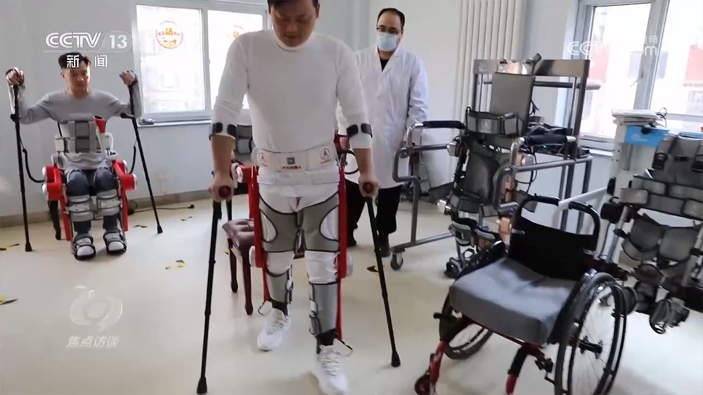 北京大艾機器人科技有限公司董事長、北京航空航天大學教授帥梅:“就是通過外骨骼機器人訓練,來給他建立正確的行走模式,以及正確的本體感覺,讓他能重新行走。”