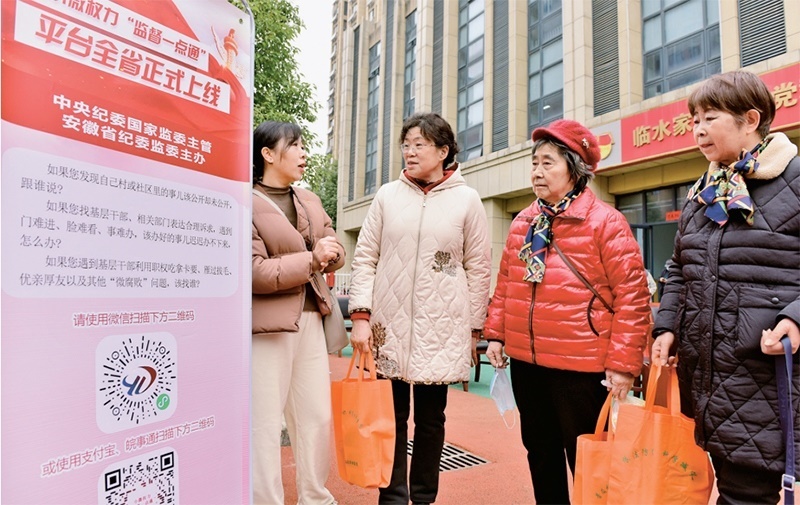 2023年2月17日,安徽省合肥市蜀山區(qū)井崗鎮(zhèn)紀(jì)委和衛(wèi)樓社區(qū)工作人員在引導(dǎo)居民關(guān)注了解小微權(quán)力“監(jiān)督一點通”平臺相關(guān)知識。 中新社發(fā) 葛宜年/攝