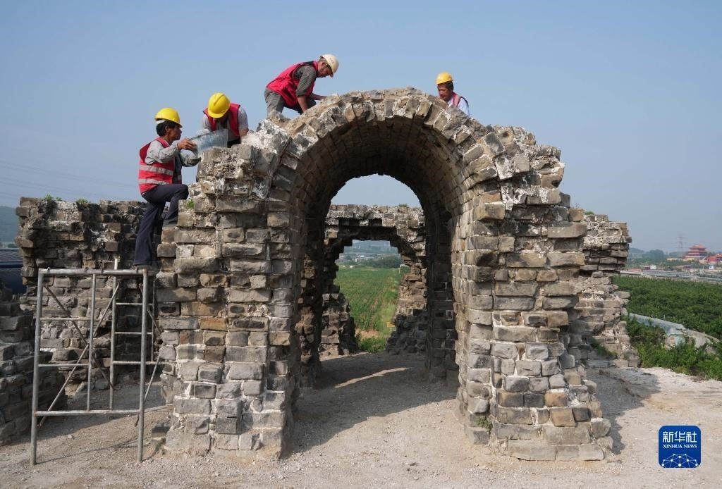 近日,河北省秦皇島市山海關(guān)區(qū)山海關(guān)長城保護(hù)展示工程——腰鋪9號敵臺和51號墻臺馬道保護(hù)修繕工程施工穩(wěn)步推進(jìn)。據(jù)介紹,腰鋪9號敵臺和51號墻臺馬道是山海關(guān)長城軍事防御體系中重要的附屬設(shè)施。修繕工程預(yù)計7月底完工。新華社記者 楊世堯 攝