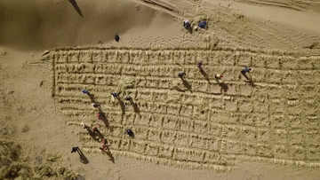 黃沙與綠色的抗衡,是空間的交鋒,更是精神的對(duì)壘。上世紀(jì)80年代初以來(lái),以“六老漢”為代表的甘肅八步沙林場(chǎng)三代職工接續(xù)奮斗,敢把沙漠變綠洲。