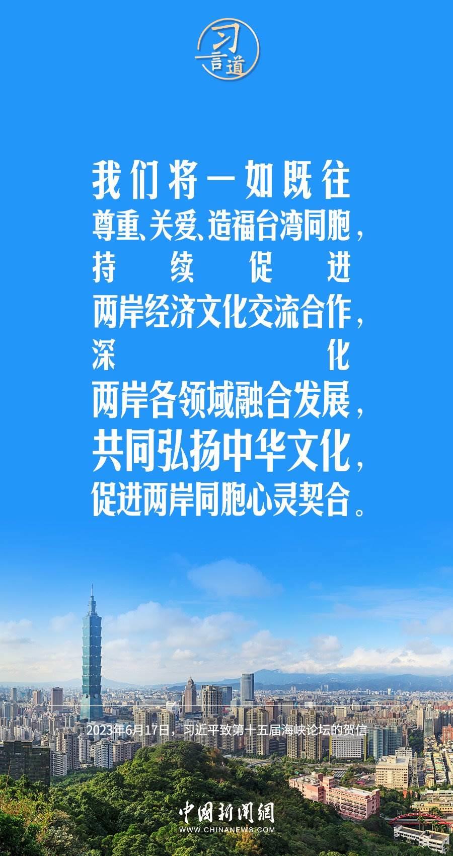 6月17日,中共中央總書(shū)記、國(guó)家主席習(xí)近平向第十五屆海峽論壇致賀信。習(xí)近平強(qiáng)調(diào)——
