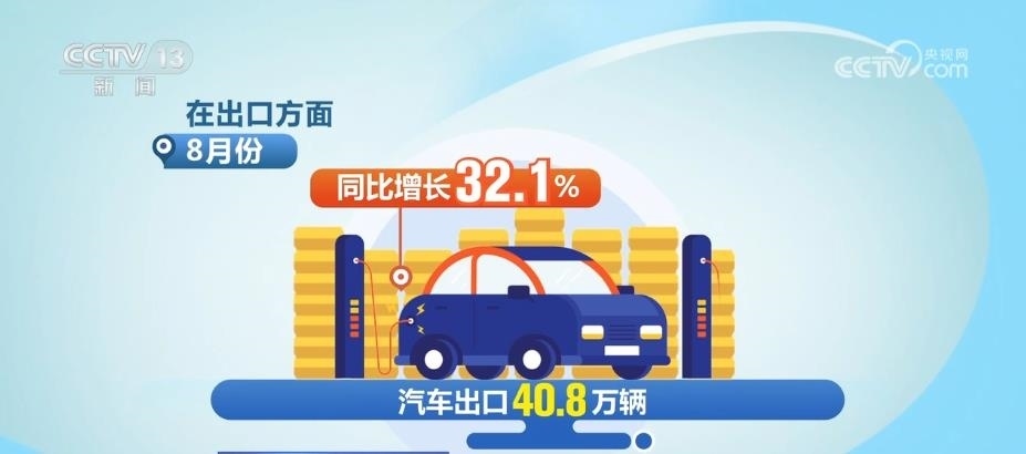 在出口方面,8月份,汽車(chē)出口40.8萬(wàn)輛,同比增長(zhǎng)32.1%。1月—8月,汽車(chē)出口294.1萬(wàn)輛,同比增長(zhǎng)61.9%。從汽車(chē)市場(chǎng)的整體表現(xiàn)來(lái)看,1月份—8月份,我國(guó)汽車(chē)產(chǎn)銷(xiāo)量分別完成1822.5萬(wàn)輛和1821萬(wàn)輛,同比分別增長(zhǎng)7.4%和8%。
