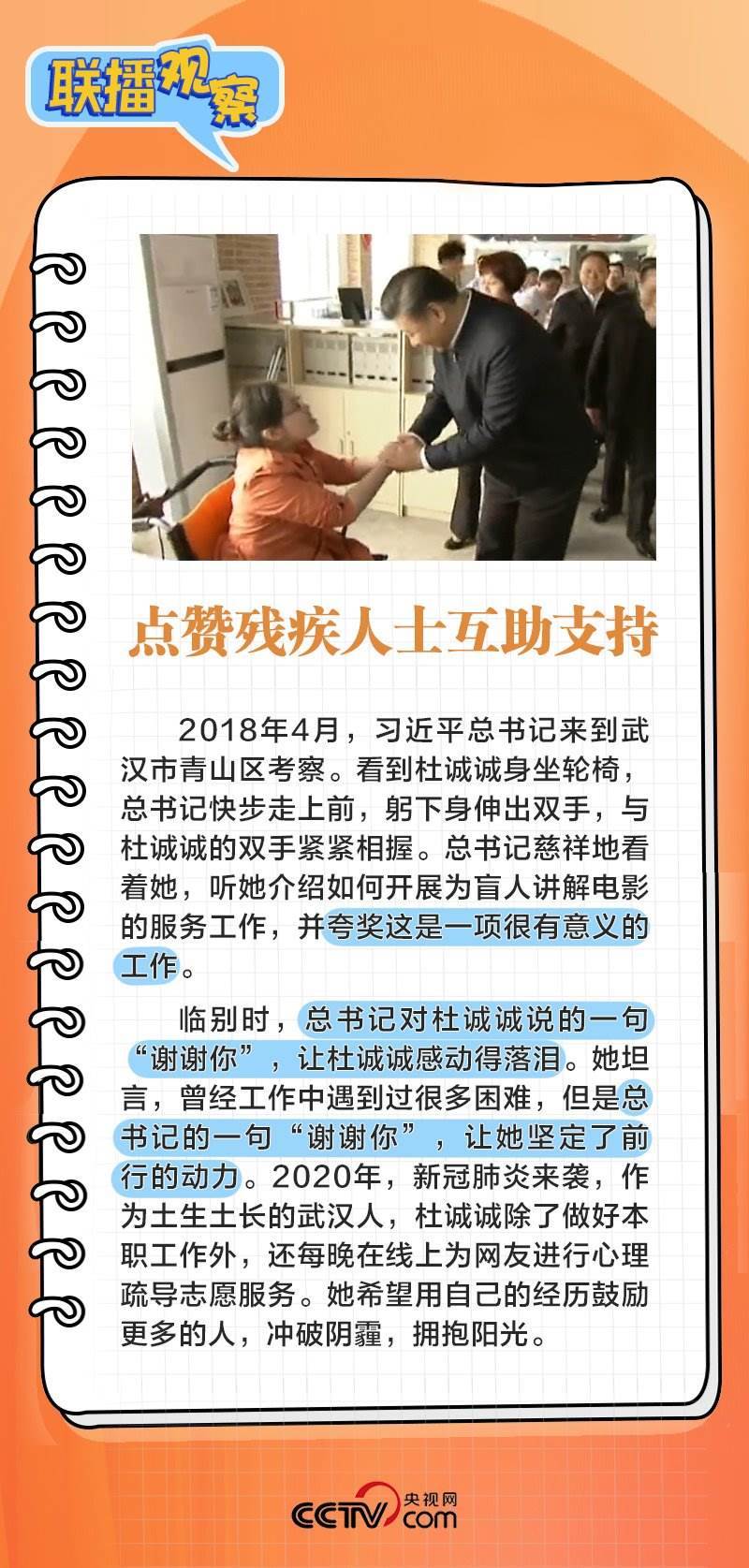 無(wú)論是在地方還是在中央工作,習(xí)近平都對(duì)殘疾人群體格外牽掛,給他們留下了很多溫暖的記憶。黨的十八大以來(lái),以習(xí)近平同志為核心的黨中央對(duì)殘疾人事業(yè)格外關(guān)心、格外關(guān)注,殘疾人的獲得感、幸福感、安全感顯著增強(qiáng)。