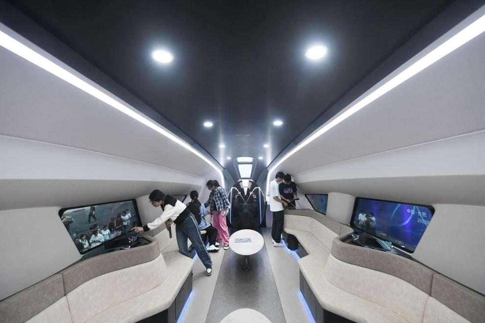 9月20日,在2023世界制造業(yè)大會上,觀眾近距離了解時(shí)速600公里高速磁浮交通系統(tǒng)。新華社記者 張端 攝