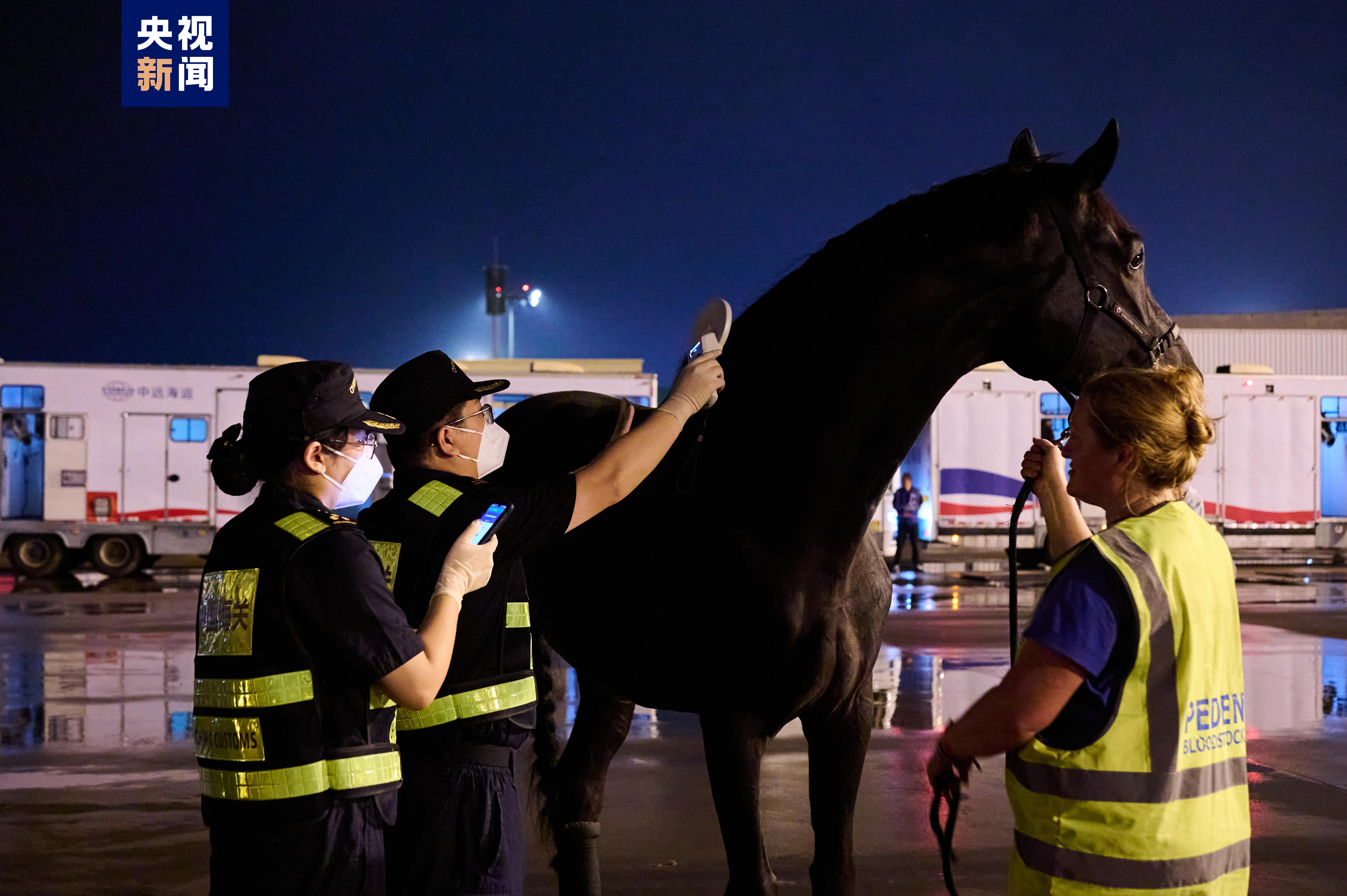 杭州亞運(yùn)會(huì)賽事總指揮部馬術(shù)項(xiàng)目管理指揮中心相關(guān)負(fù)責(zé)人表示,“這些參賽馬經(jīng)過了十幾個(gè)小時(shí)的長(zhǎng)途飛行,狀態(tài)比較疲憊,我們要在精準(zhǔn)查驗(yàn)、確保安全的同時(shí),盡可能縮短通關(guān)轉(zhuǎn)運(yùn)時(shí)間,保障馬匹福利。”為此,杭州蕭山國(guó)際機(jī)場(chǎng)停機(jī)坪提前用圍擋設(shè)置了專門的馬匹裝卸轉(zhuǎn)運(yùn)場(chǎng)地,完成場(chǎng)地消殺,專用運(yùn)輸車輛和設(shè)備提前進(jìn)入。海關(guān)就近設(shè)置隨機(jī)人員通關(guān)專用通道,縮短人、馬分離時(shí)間,保障隨機(jī)人員與參賽馬同步通關(guān),并創(chuàng)新開發(fā)參賽馬芯片識(shí)別程序,運(yùn)用“賽馬檢疫在線”智慧監(jiān)管系統(tǒng)大幅提升參賽馬身份驗(yàn)核效率。同時(shí),通過優(yōu)化流程、協(xié)同運(yùn)行,確保馬匹裝備、飼料、獸藥、馬醫(yī)療器械等隨機(jī)物資快速通關(guān)。參賽馬采用“快進(jìn)快出”的方式,在同等動(dòng)物衛(wèi)生條件下參賽,比賽結(jié)束后立即出境,實(shí)現(xiàn)賽馬“順利入境、健康參賽、安全返回”。