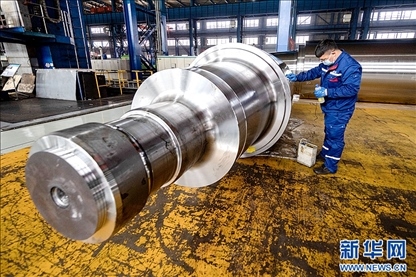在位于黑龍江省齊齊哈爾市的中國一重生產車間內,工人正在進行生產作業(yè)。