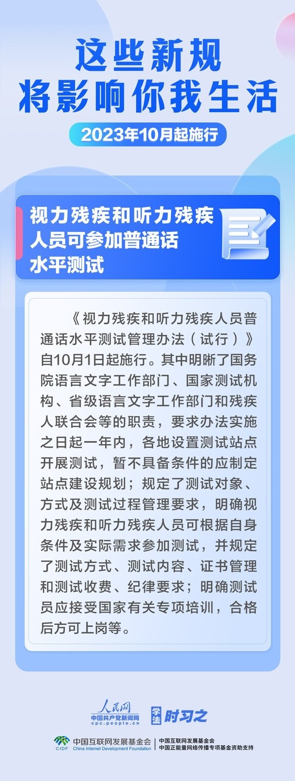 預(yù)防和制止假冒國企央企等違法行為;加強校外培訓監(jiān)管;視力殘疾和聽力殘疾人員可參加普通話水平測試……10月,這些新規(guī)施行,將影響你我生活。