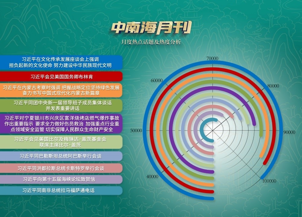 在央視網(wǎng)“智聞”系統(tǒng)提取分析的6月全網(wǎng)時(shí)政新聞熱點(diǎn)中,處處體現(xiàn)著“以古人之規(guī)矩,開自己之生面”的生動(dòng)實(shí)踐。