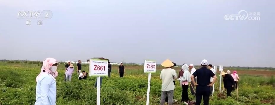 張慶喜所說的耐鹽堿品種是破解鹽堿地開發(fā)利用的另一個關(guān)鍵。記者在當(dāng)?shù)佧}堿地農(nóng)業(yè)示范基地采訪時,正好趕上科學(xué)家團隊研發(fā)的耐鹽堿馬鈴薯新品種測產(chǎn)驗收。經(jīng)過1個多小時現(xiàn)場測產(chǎn),結(jié)果顯示,在2‰輕度鹽堿地上示范推廣的兩個品系畝產(chǎn)達到3300公斤左右的較高產(chǎn)量水平。