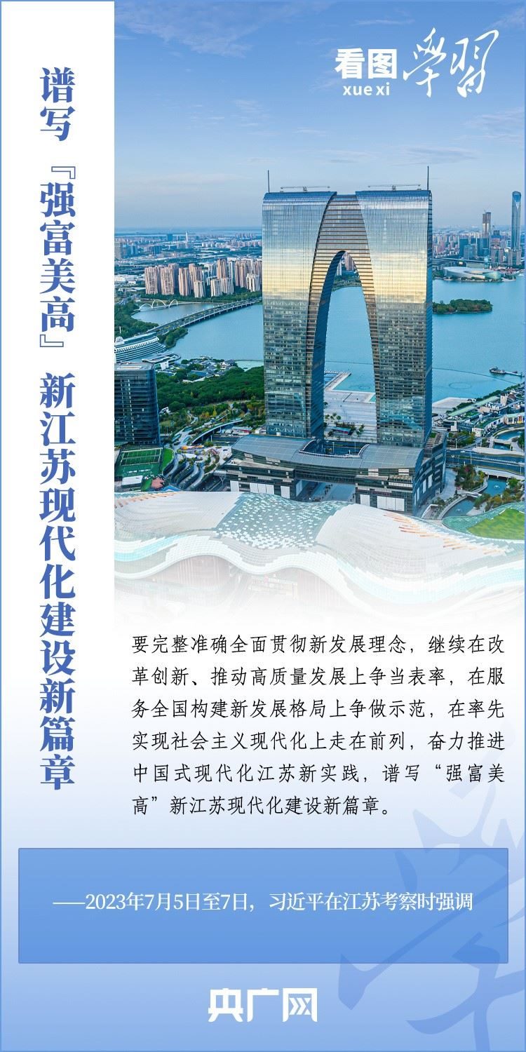 7月5日至7日,習近平總書記先后來到蘇州、南京等地,深入工業(yè)園區(qū)、企業(yè)、歷史文化街區(qū)、科學實驗室等進行調研??倳洀娬{,要奮力推進中國式現代化江蘇新實踐,譜寫“強富美高”新江蘇現代化建設新篇章。一起來學習!
