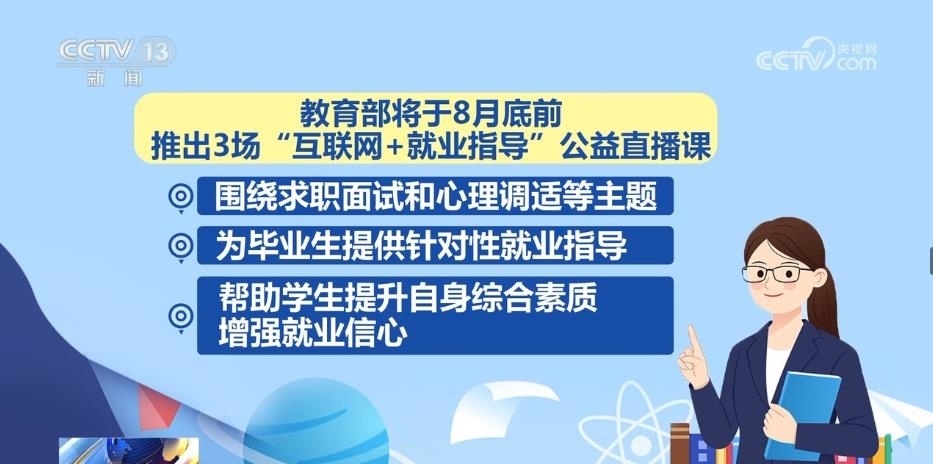據(jù)了解,教育部將于8月底前推出3場“互聯(lián)網(wǎng)+就業(yè)指導(dǎo)”公益直播課,圍繞求職面試和心理調(diào)適等主題,為畢業(yè)生提供針對性就業(yè)指導(dǎo),幫助學(xué)生提升自身綜合素質(zhì)、增強(qiáng)就業(yè)信心。