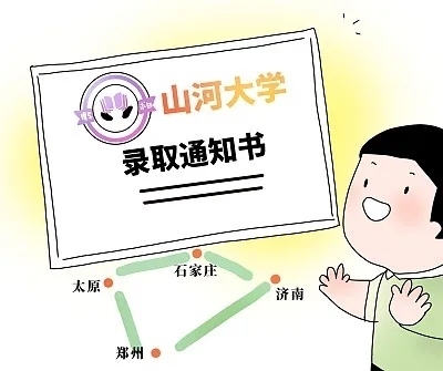 網(wǎng)友隨后設(shè)計(jì)出“山河大學(xué)”的“官網(wǎng)、校徽、校內(nèi)建筑、錄取通知書”等,喊出“三年超清華,五年趕北大”……該話題引發(fā)大量網(wǎng)友熱議,吐槽“建校當(dāng)天該有的都有了,就是沒有學(xué)校”。