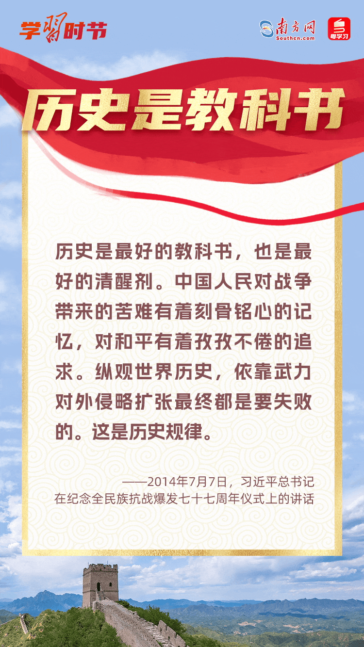 習(xí)近平總書(shū)記指出,歷史是最好的教科書(shū),也是最好的清醒劑。戰(zhàn)爭(zhēng)的創(chuàng)痛警示我們,吾輩當(dāng)自強(qiáng),我們無(wú)論身在何處、在何行業(yè),都要以史為鑒,勿忘國(guó)恥、砥礪前行。在“七七事變”86周年來(lái)臨之際,讓我們一起重溫總書(shū)記有關(guān)“戰(zhàn)爭(zhēng)與和平”的重要論述。