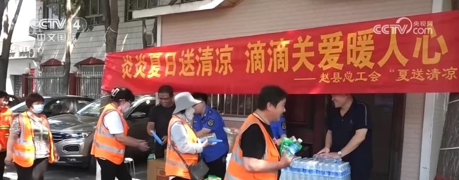 北京、河北、山東等地組織多批次“送清涼”“送健康”活動(dòng)。在服務(wù)驛站配備飲用水、藿香正氣水等防暑降溫物資,方便外賣小哥、外來(lái)游客、一線環(huán)衛(wèi)工人等避暑納涼。
