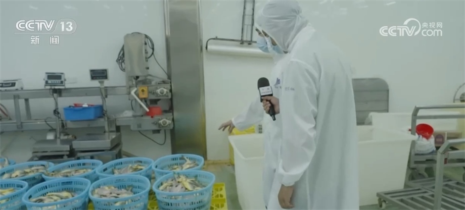 總臺(tái)央視記者 馬寧:我現(xiàn)在來到了寧德市當(dāng)?shù)匾患冶容^大的黃魚生產(chǎn)企業(yè),大家可以看到我身后就是工人們正在把已經(jīng)腌制好的黃魚經(jīng)過分撿、稱重、打包、送進(jìn)冷庫,這些經(jīng)過處理的大黃魚就可以通過冷鏈物流送到千家萬戶的餐桌上。