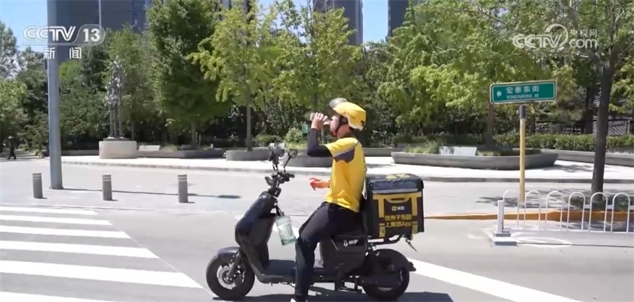 某快遞平臺北京金地營業(yè)部負(fù)責(zé)人 萬建波:十二點(diǎn)到(下午)兩點(diǎn)是全天最熱的時(shí)候,我們會(huì)避開這個(gè)時(shí)間段,這樣小哥能得到充足的休息,也能將商品及時(shí)送達(dá)。