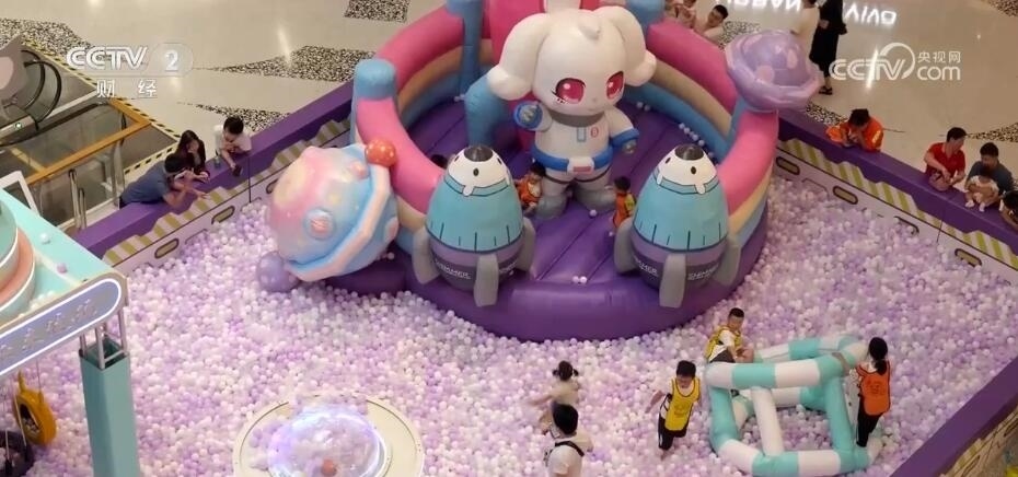上海某商場運(yùn)營經(jīng)理 趙佳麗:我們會在暑假檔的時候,在中庭引入一些比較熱門的IP(知識產(chǎn)權(quán))游玩設(shè)施。另外,因?yàn)槿龢鞘莾和瘶I(yè)態(tài),所以全年都會安排一些固定的互動點(diǎn)來供周邊的家庭游玩。